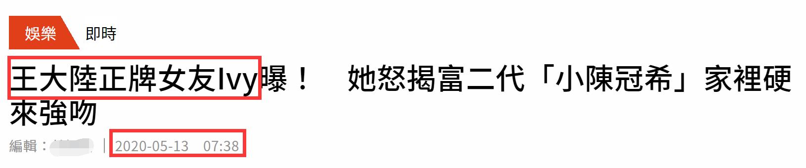 在蔡卓宜被曝光之前,王大陆曾多次被台媒拍到与Ivy高调约会,台媒也以王大陆的正牌女友来称呼她。