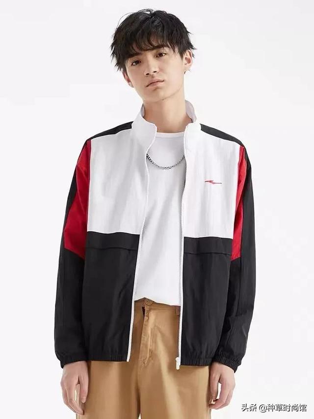 这件运动冲锋衣很复古,适合秋天,白红黑三色拼接,既有设计感又不会太浮夸。