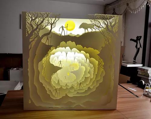 这个过程类似纸雕作品,通过雕刻不同的层次细节,再利用光影就可以实现令人惊艳的效果。